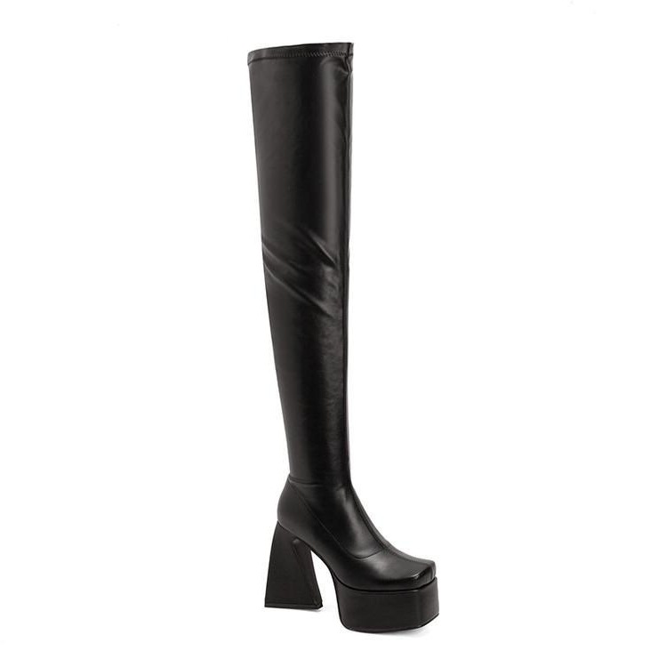 Botas de Tacón Grueso con Plataforma por Encima de la Rodilla