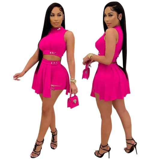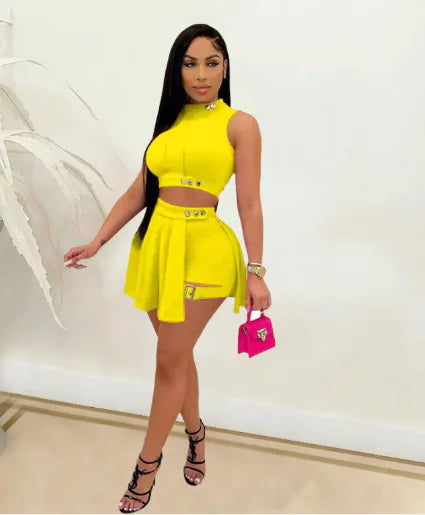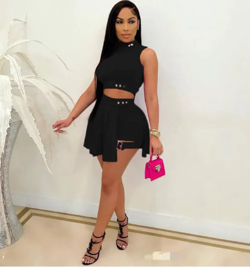 Top sin mangas con diseño ajustado y detalles decorativos, acompañado de culottes cortos. Ligero y transpirable, ideal para días cálidos y salidas casuales. Inspirado en la moda europea y americana.