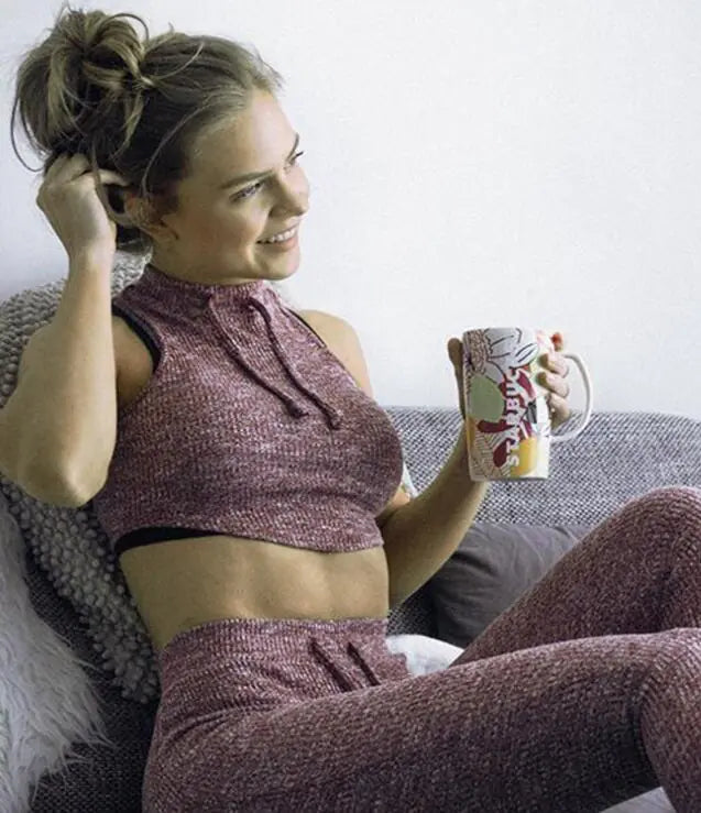 The nine-length pants complement the fitted top perfectly, making this set ideal for both casual wear and intense workouts. With sizes ranging from S to L, you can find your perfect fit easily.