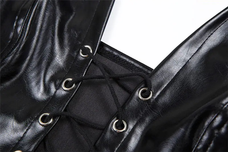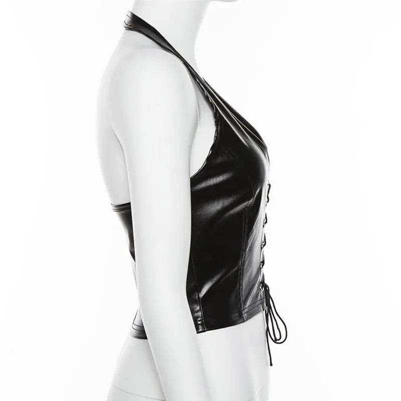 Top Corto Halter de Cuero PU Negro – Sexy y Sin Espalda