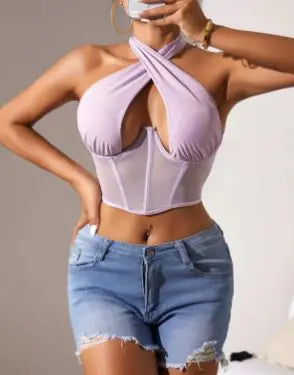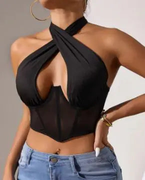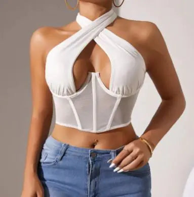 - Estilo: Corsé bajo pecho tipo chaleco con acabado satinado y encaje.