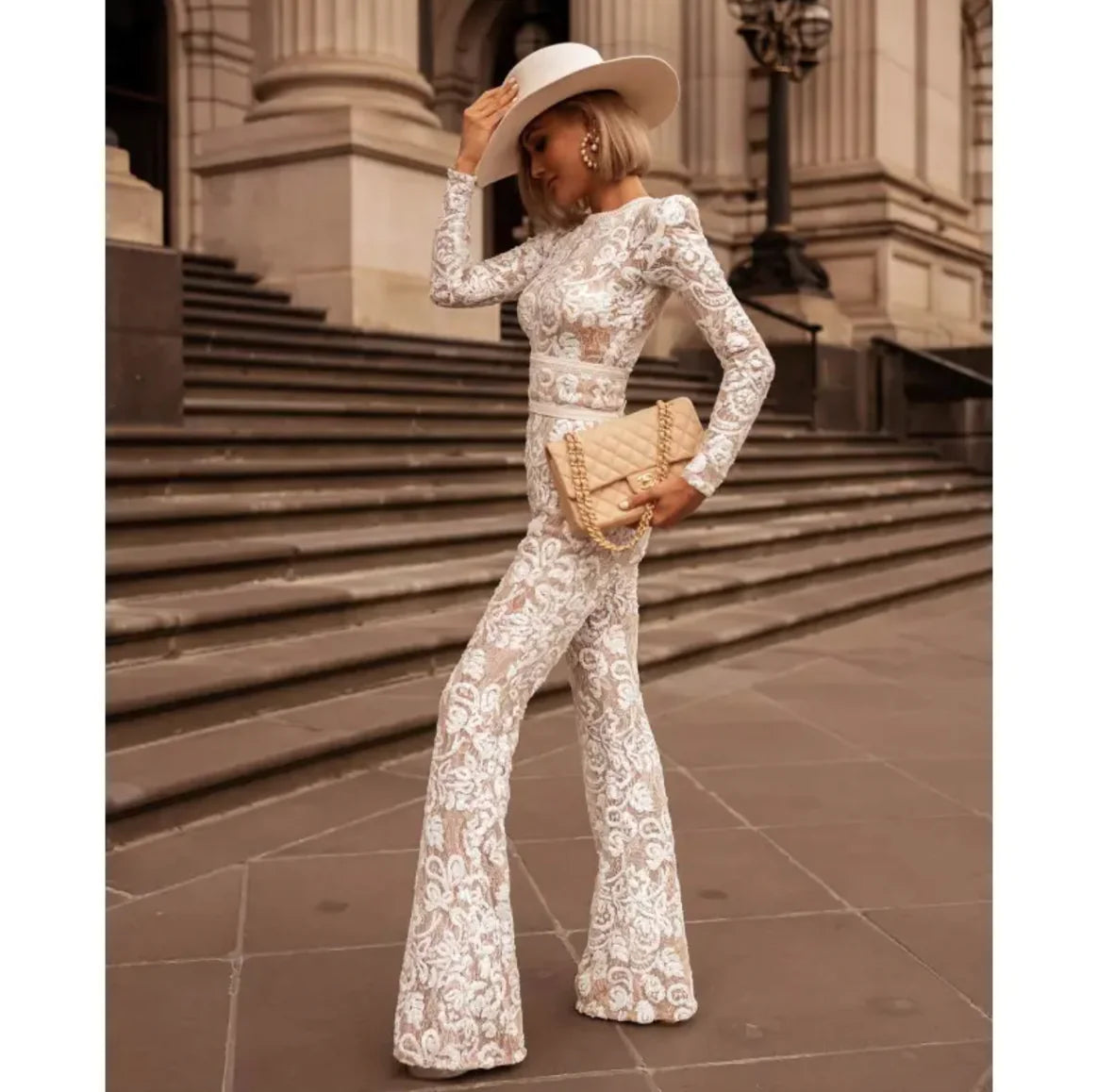 Mono de inspiración europea y americana, confeccionado en delicado encaje compuesto con un diseño entallado que estiliza la silueta. Sofisticado y versátil, ideal para eventos formales, fiestas o salidas con estilo. Combina comodidad y moda de alto nivel en una sola pieza.
