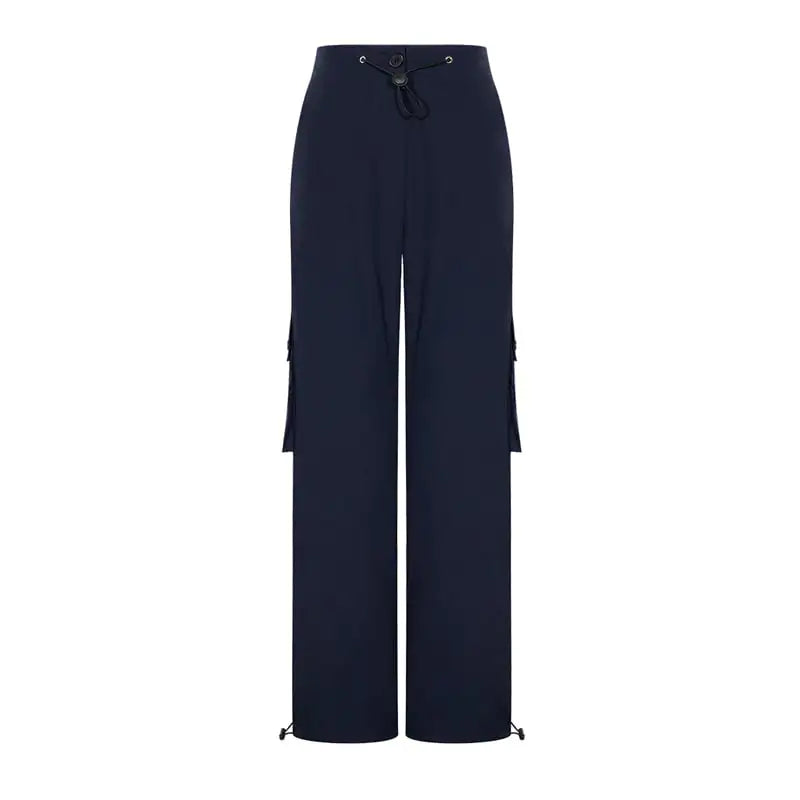 Disponible en un clásico color azul marino, estos pantalones cuentan con elementos de empalme de moda, añadiendo un toque de estilo contemporáneo a tu atuendo. Combínalos con tu top y zapatos favoritos para un look elegante que transita sin esfuerzo del día a la noche.