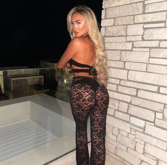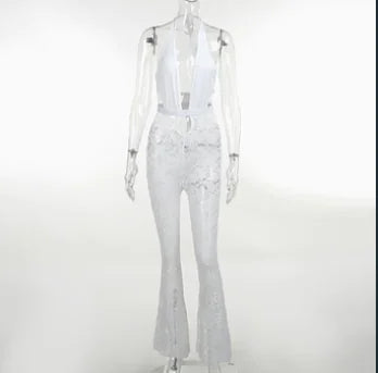 Atrae todas las miradas con este mono de encaje elegante y sensual. Su escote en V profundo y los detalles calados crean un look audaz y femenino. Perfecto para fiestas nocturnas, citas románticas u ocasiones especiales. Diseñado para realzar tu figura y combinar fácilmente con tacones y accesorios para un estilo glamuroso y seguro.