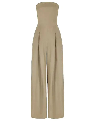 Este mono moderno combina estilo y comodidad con un diseño de palabra de honor suelto y espalda descubierta. Su corte palazo ofrece un ajuste holgado y fresco, ideal para el buen tiempo. Perfecto para salidas casuales o eventos de noche, aporta un look chic y actual sin esfuerzo.
