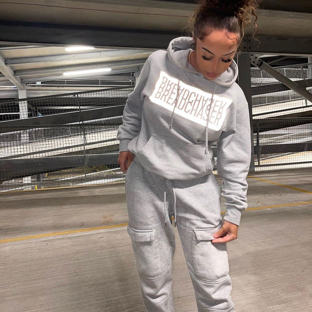 Conjunto cómodo y moderno, confeccionado en poliéster de alta calidad, con estampado de letras, números y textos que aporta un toque audaz y artístico. Incluye sudadera con capucha y pantalón con bolsillos prácticos, ideal para llevar lo esencial con comodidad. Disponible en gris claro y negro, en tallas S a XL, perfecto para salidas casuales o días de relax en casa.