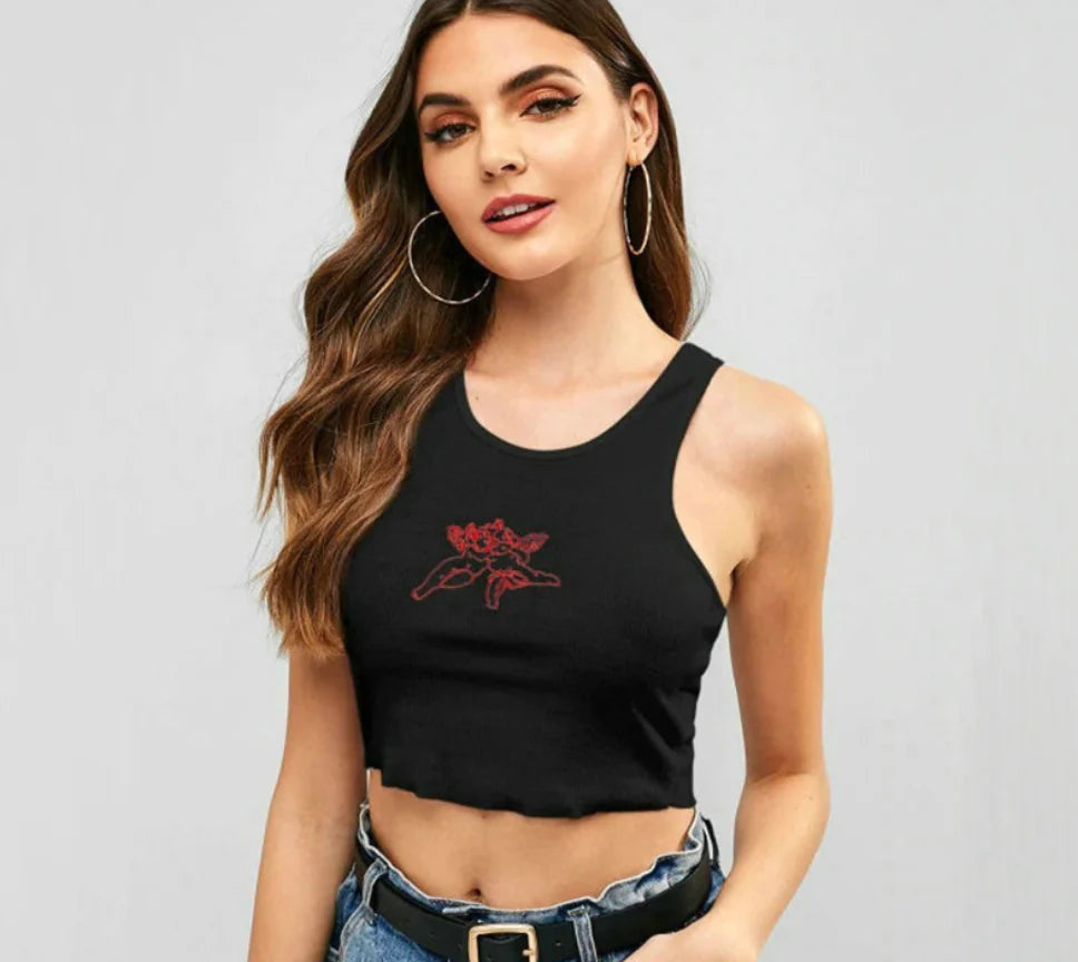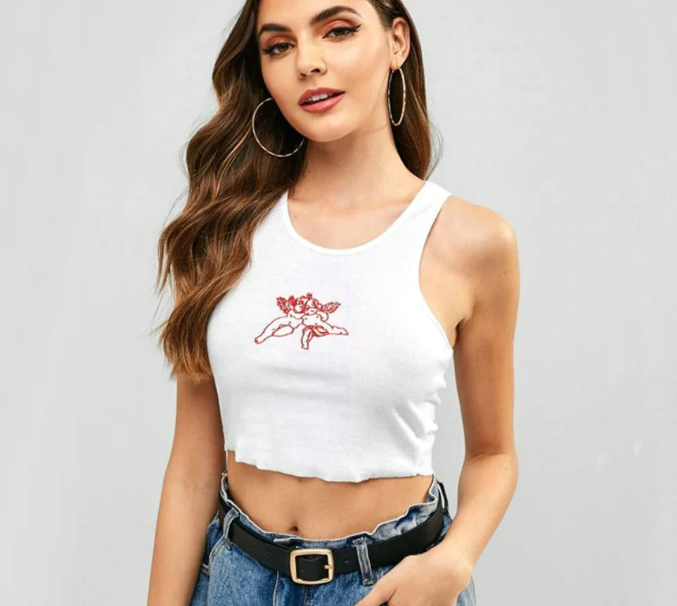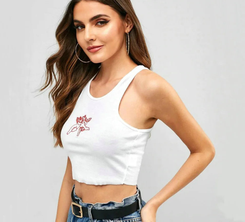 Confeccionado con una tela de mezcla de algodón de alta calidad, este top ofrece una comodidad excepcional y transpirabilidad, haciéndolo ideal para el clima cálido. El encantador detalle de bordado de dibujos animados agrega un elemento divertido, asegurando que destaques dondequiera que vayas. Disponible en los colores clásicos blanco y negro, puedes combinarlo fácilmente con tus pantalones favoritos.