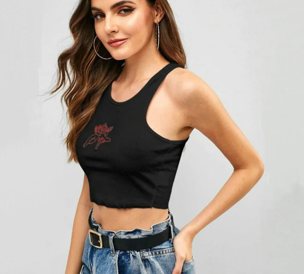 ¡Entra en estilo esta temporada con nuestro Top Corto Bordado con Cuello U—una adición indispensable a tu guardarropa!