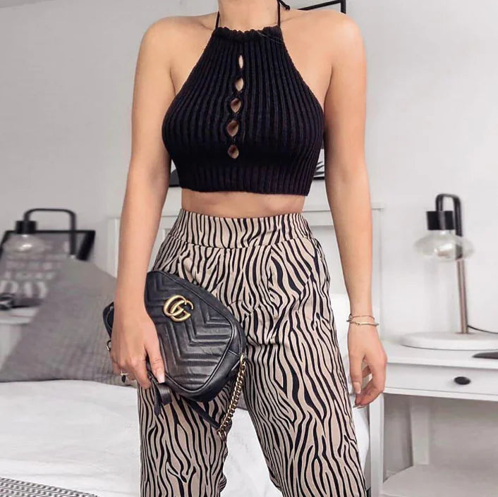 Top corto de algodón con cuello halter y espalda abierta para un look fresco y favorecedor. Ligero, transpirable y suave, perfecto para días y noches de verano.